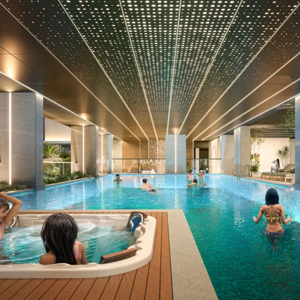 Tổ hợp tiện ích đẳng cấp nằm tại tầng 4 tòa nhà với không gian thoáng mát, sỡ hữu Hồ bơi tiêu chuẩn Olympic, cùng hồ bơi trẻ em, Jacuzzi, Khu vui chơi trẻ em, Gym – Yoga, Spa, Coffee Bar,…cùng tầm nhìn thông thoáng, nơi đây sẽ mang đến cho cư dân phút giây thư giãn chất lượng.